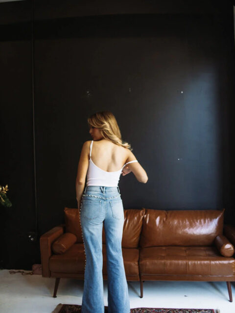Camilla – High Rise Pearl Embellished Boot Cut Jeans