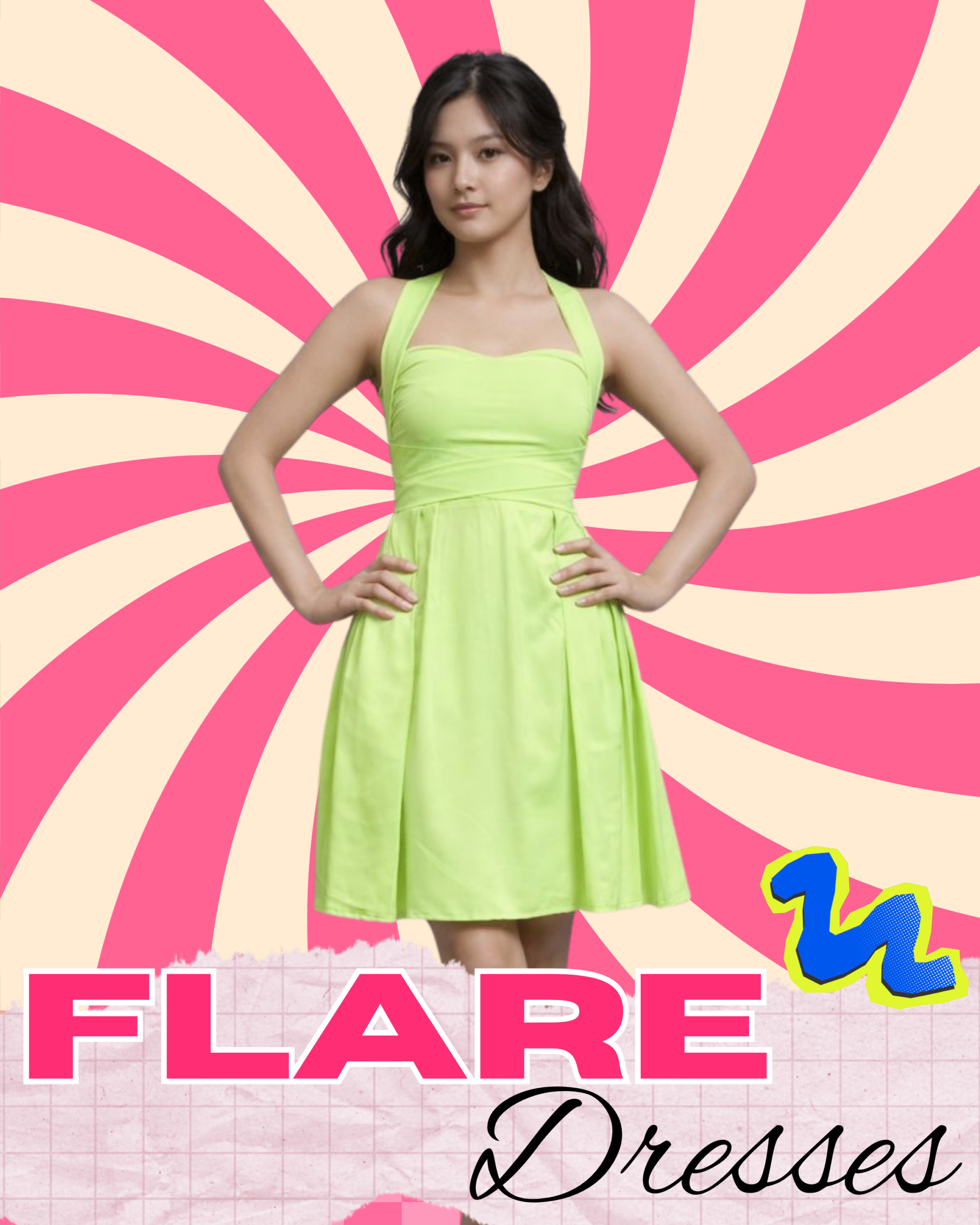 Combo Offer Product – Blush Pink + Lime Green Satin Halter Neck Fit & Flare Dress
