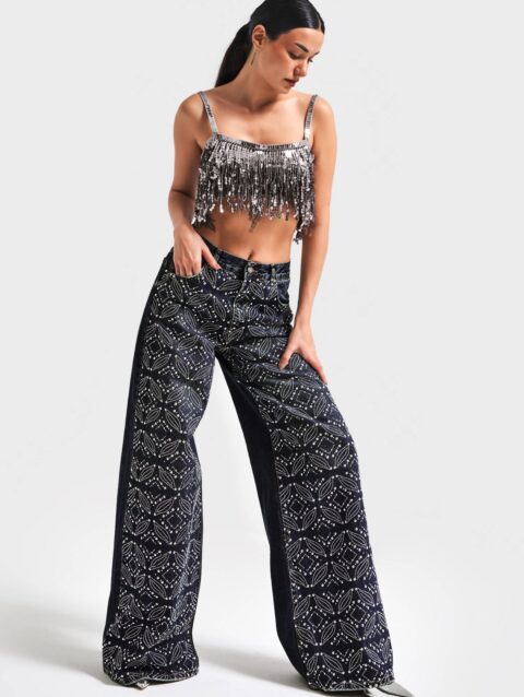 Disco Dust – Rhinestone Embellished Wide Leg Jeans