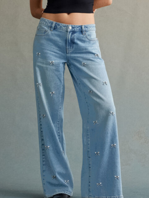 Bling It On – Rhinestone Embellished Wide Leg Jeans