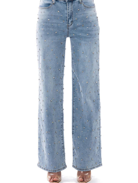 Adore – Rhinestone Embellished Wide Leg Jeans