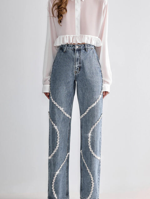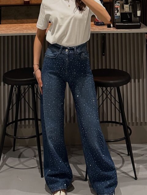 Rhinestone Embellished Wide Leg Jeans – Diana