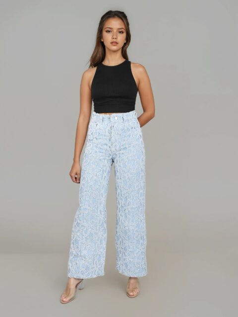 Dahlia – High Rise Wide Leg Jacquard Jeans