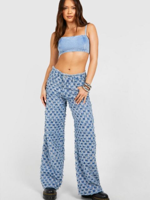 High Rise Wide Leg Jacquard Jeans – Check Mate