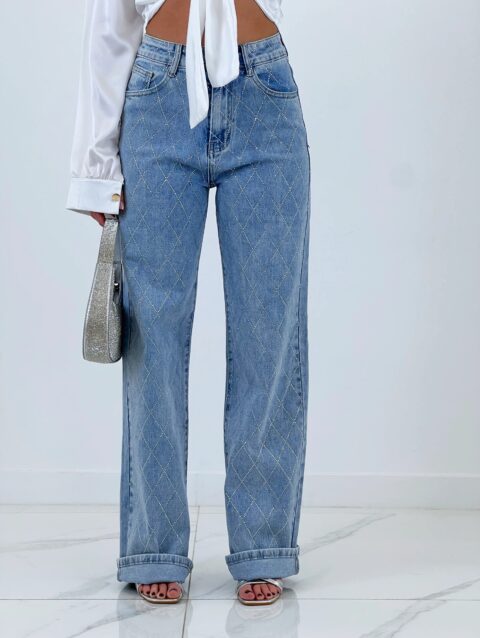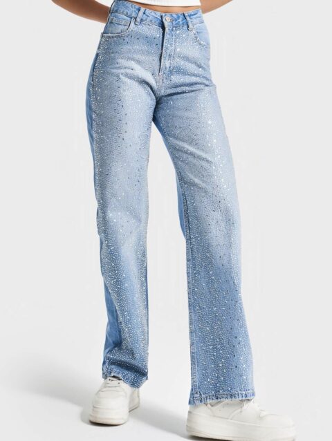 Diva – Rhinestone Embellished Wide Leg Jeans