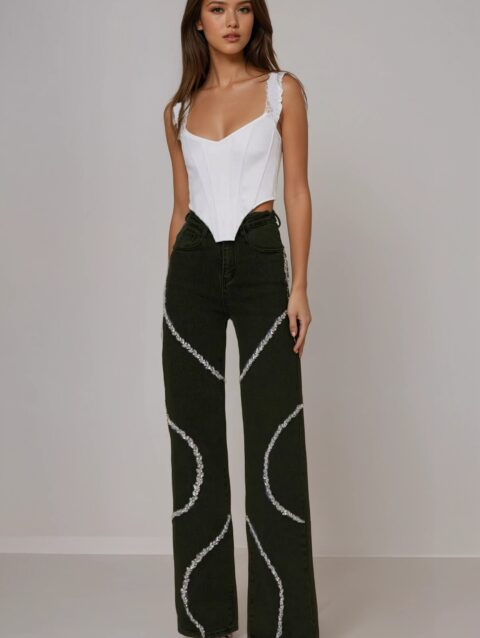 Obsession Noir – Embellished Wide Leg Cut Out Jeans