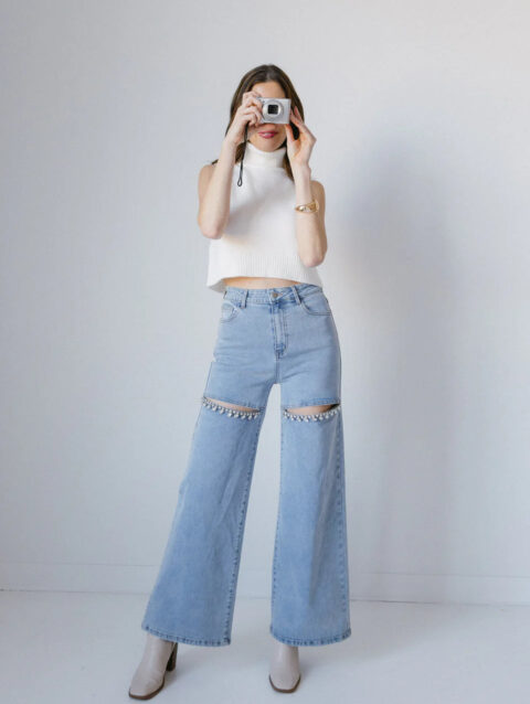 Embellished Wide Leg Cut Out Jeans – Taylor