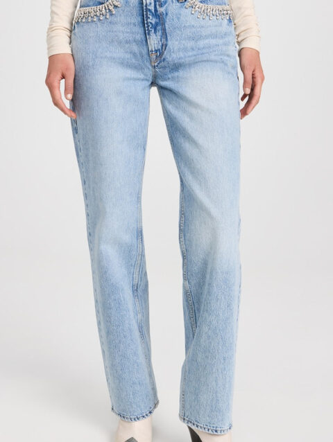 Rhinestone Embellished Wide Leg Jeans – Athena