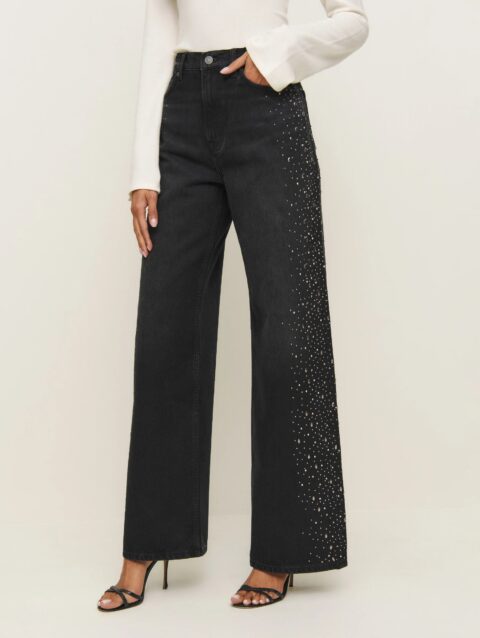 Limited Edition Pearl Embellished Wide Leg Jeans – Black