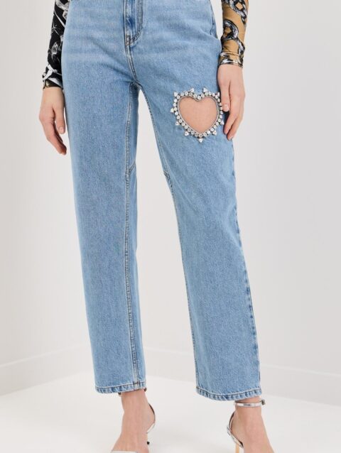 Cupid’s Charm – Rhinestone Embellished Cut Out Jeans – IceBlue