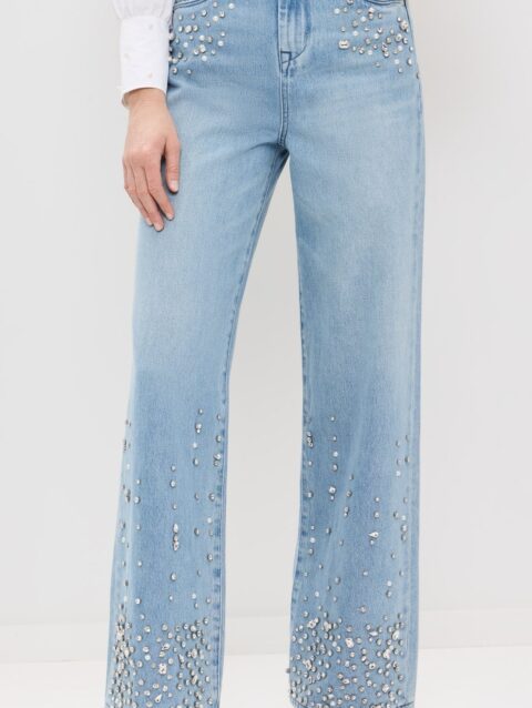 Pearl Eden – Rhinestone Embellished Wide Leg Jeans – Ice Blue