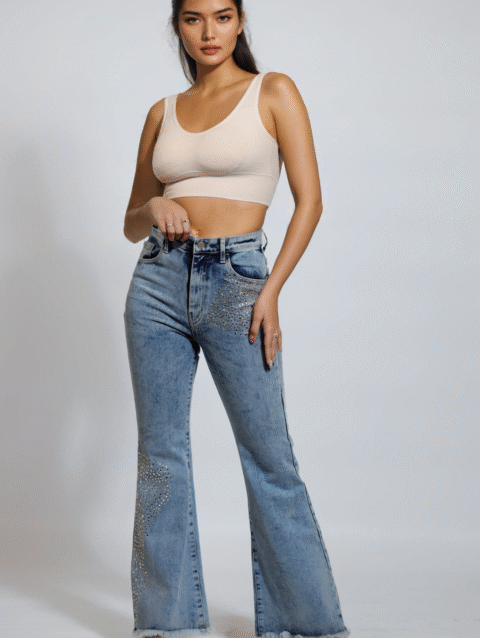 Rhinestone Embellished Wide Leg Jeans – Starlet Sparkle