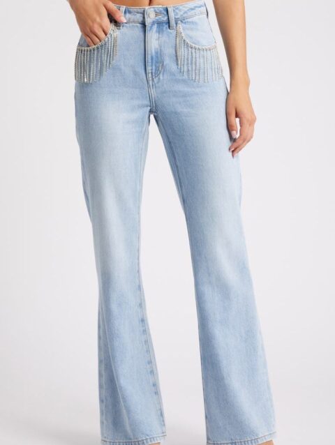 Rhinestone Tassel Wide Leg Jeans – Ice Blue