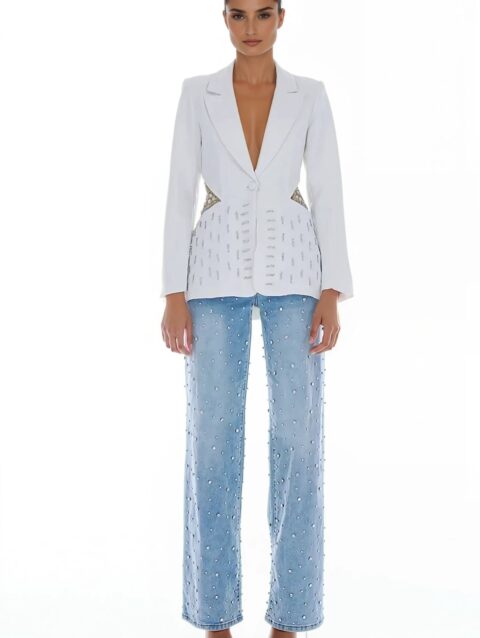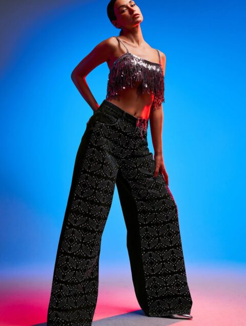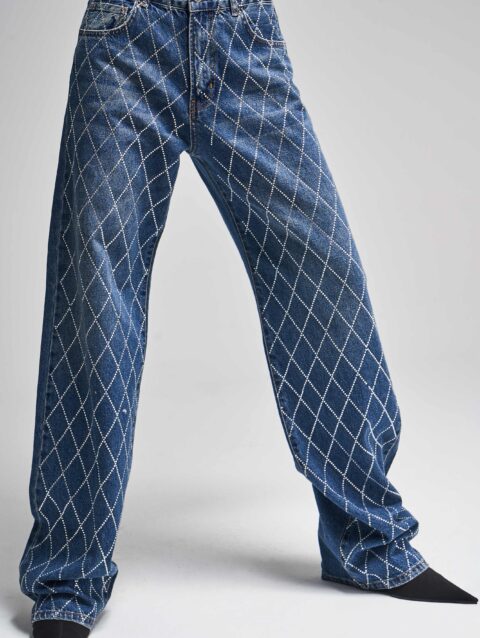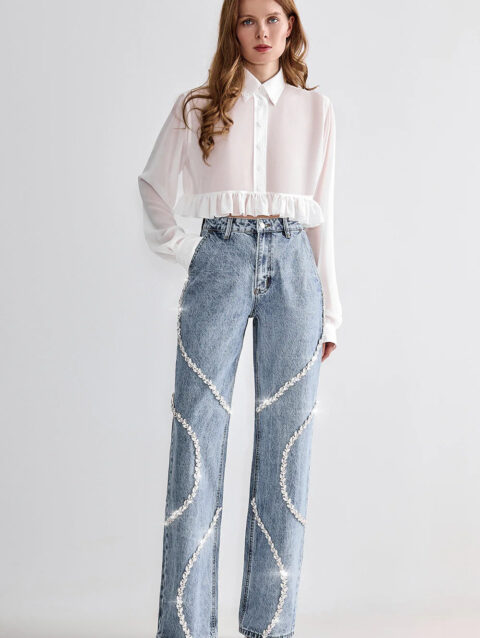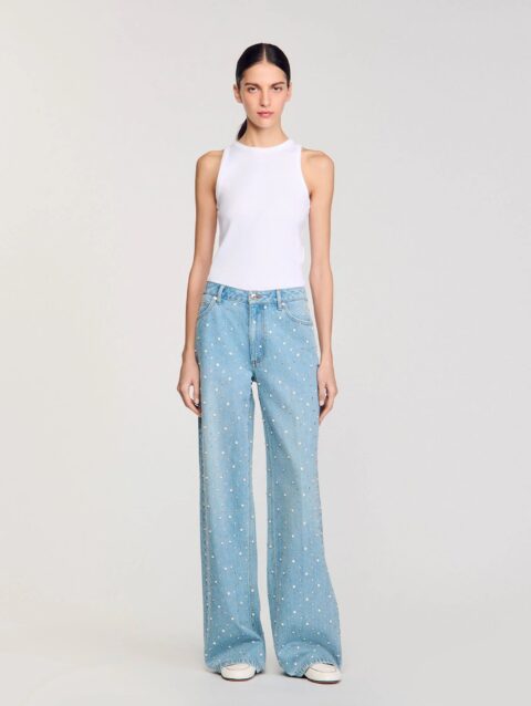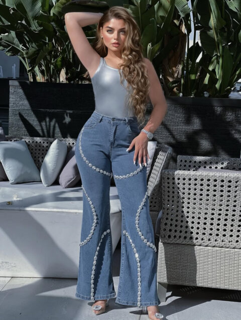 Anoushka – Rhinestone Pearl Beaded Wide Leg Jeans