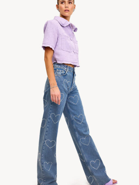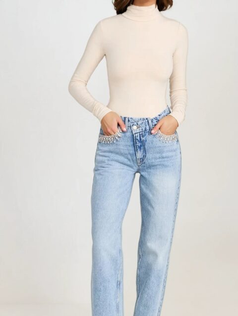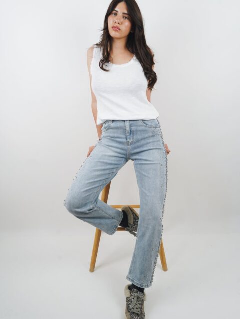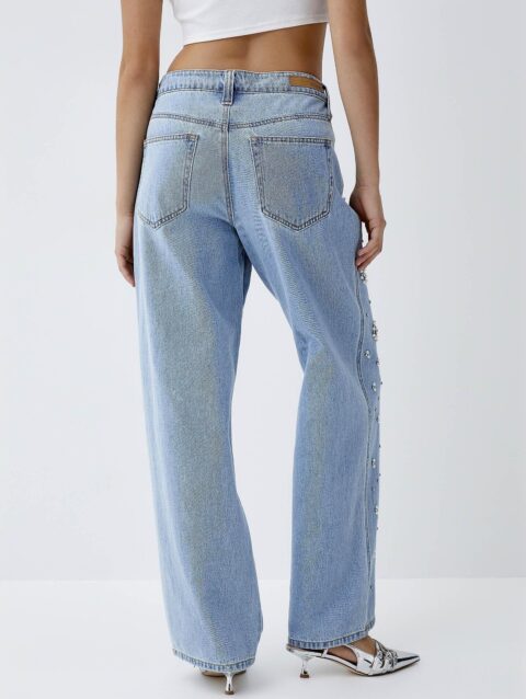 Pearl Affair – Pearl Embellished Wide Leg Jeans – Stone blue