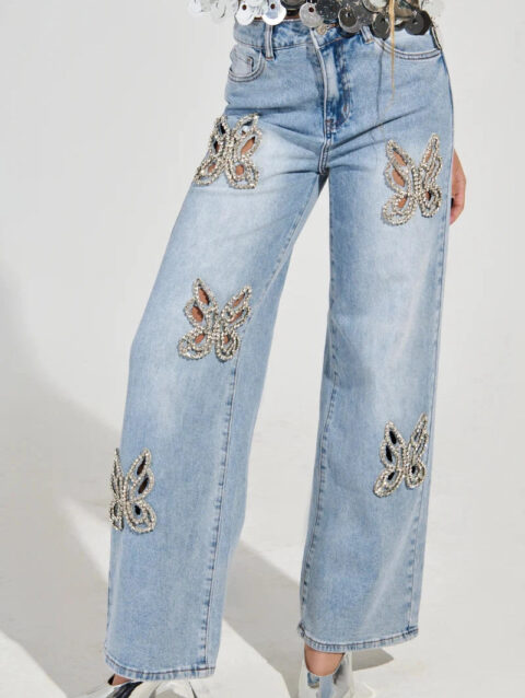 Diva – Rhinestone Embellished Wide Leg Jeans