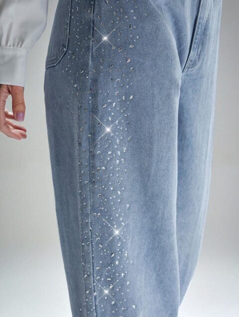 Rhinestone Embellished Wide Leg Jeans – Starlet Sparkle