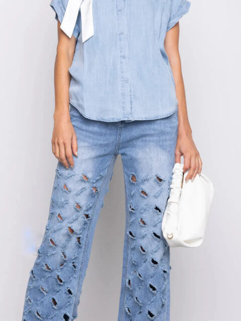 Diamond Distressed Wide Leg Jeans – Roxanne