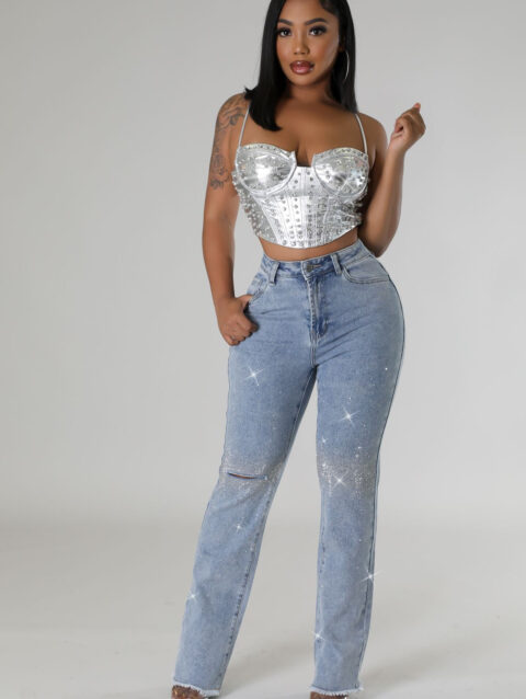 Dazzle Band – Rhinestone Embellished Wide Leg Jeans
