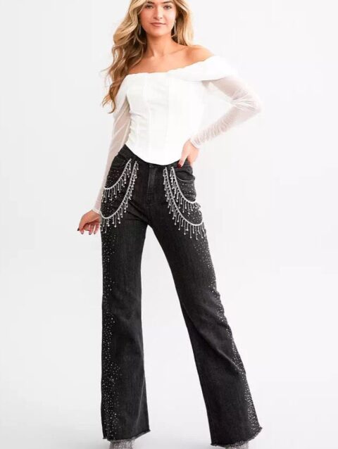 Black Dazzle Band – Rhinestone Embellished Wide Leg Jeans