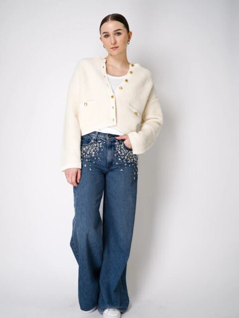 Myra – High Rise Pearl Embellished Wide Leg Jeans