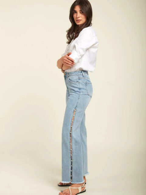Embellished Wide Leg Fray Bottom Jeans – Eleanor
