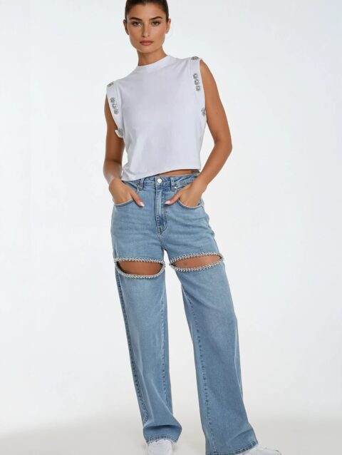 Embellished Wide Leg Cut Out Jeans – Taylor