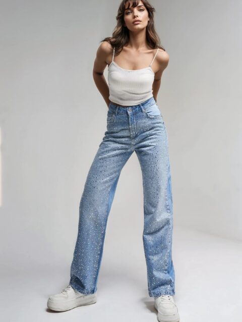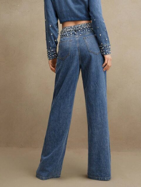 Rhinestone Embellished Wide Leg Jeans – Diana