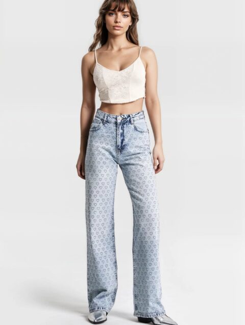 Love Struck Rhinestone Embellished Wide Leg Jeans