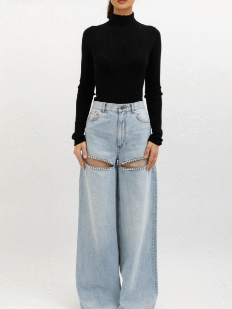 Obsession Noir – Embellished Wide Leg Cut Out Jeans