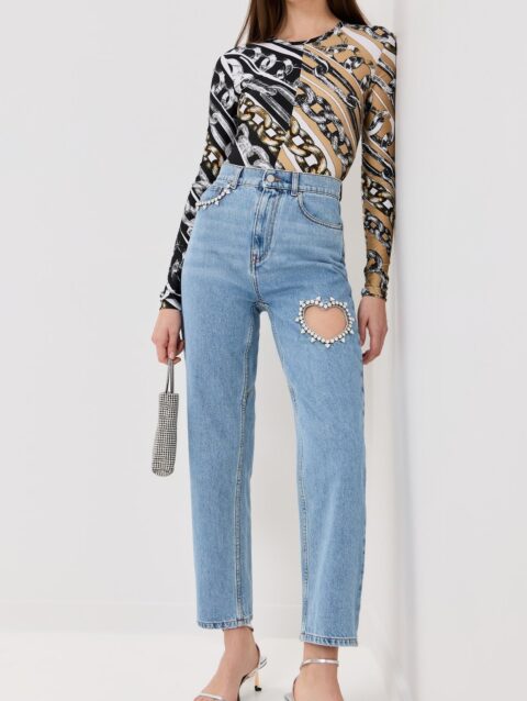 Cupid’s Charm – Rhinestone Embellished Cut Out Jeans – IceBlue
