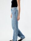 Pearl Affair – Pearl Embellished Wide Leg Jeans – Stone blue