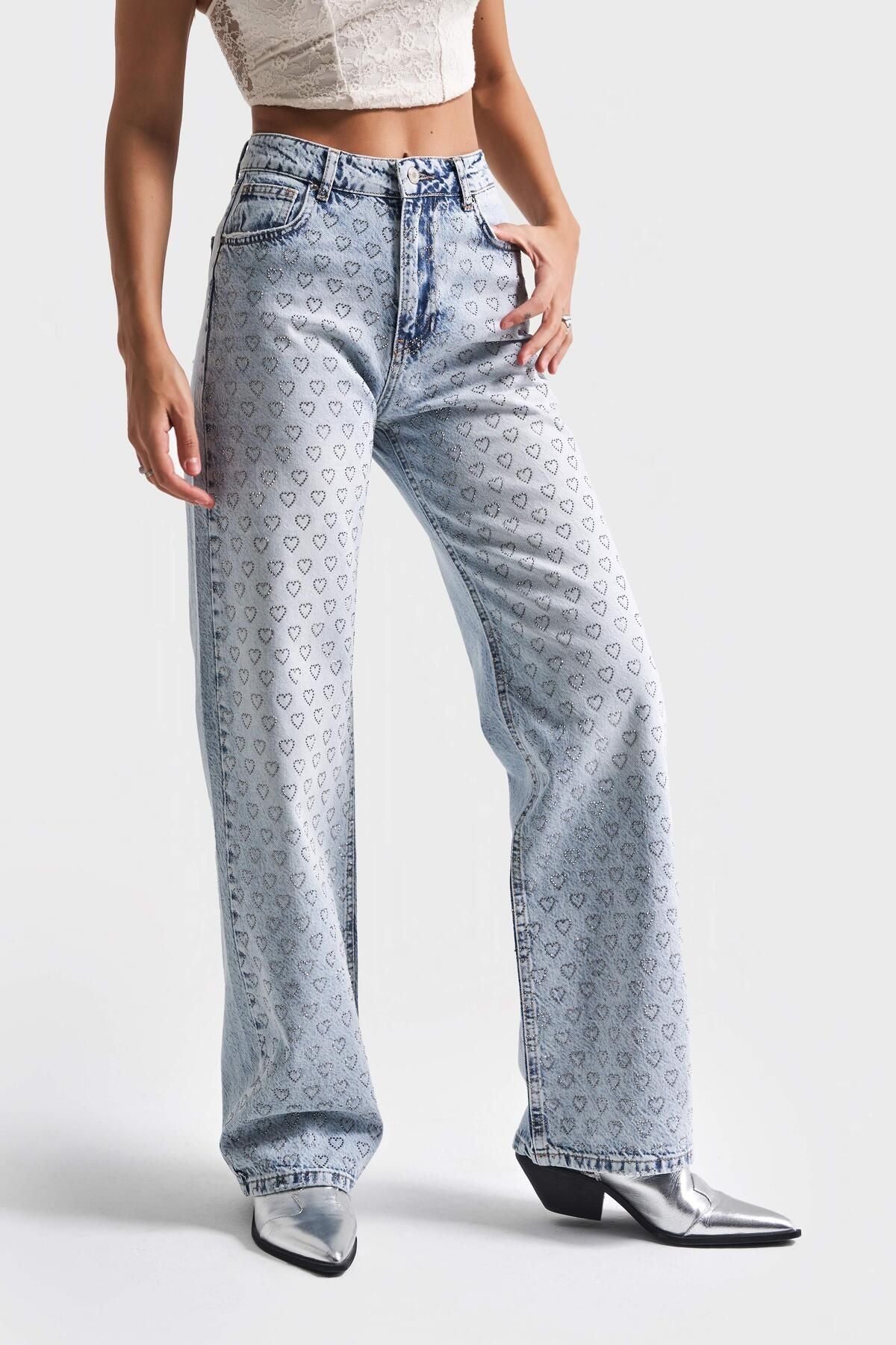 Adore – Rhinestone Embellished Wide Leg Jeans
