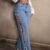Sparkle Drip – Distressed Rhinestone Embellished Wide Leg Jeans – Ice Blue