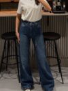 Emma – Rhinestone Embellished Wide Leg Jeans – Dark Blue
