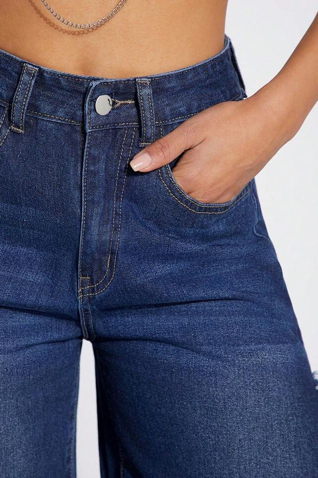 Rhea- Rhinestone Embellished Wide Leg Jeans – Dark Blue