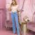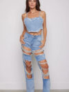 Rhinestone Fringe Boot Cut Flared Jeans Ice Blue