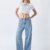 Alina – Pearl Embellished Wide Leg Jeans – Ice Blue
