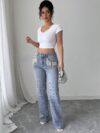 Pearl Studded Boot Cut Jeans Ice Blue