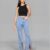 Rhinestone Fringe Boot Cut Flared Jeans Ice Blue
