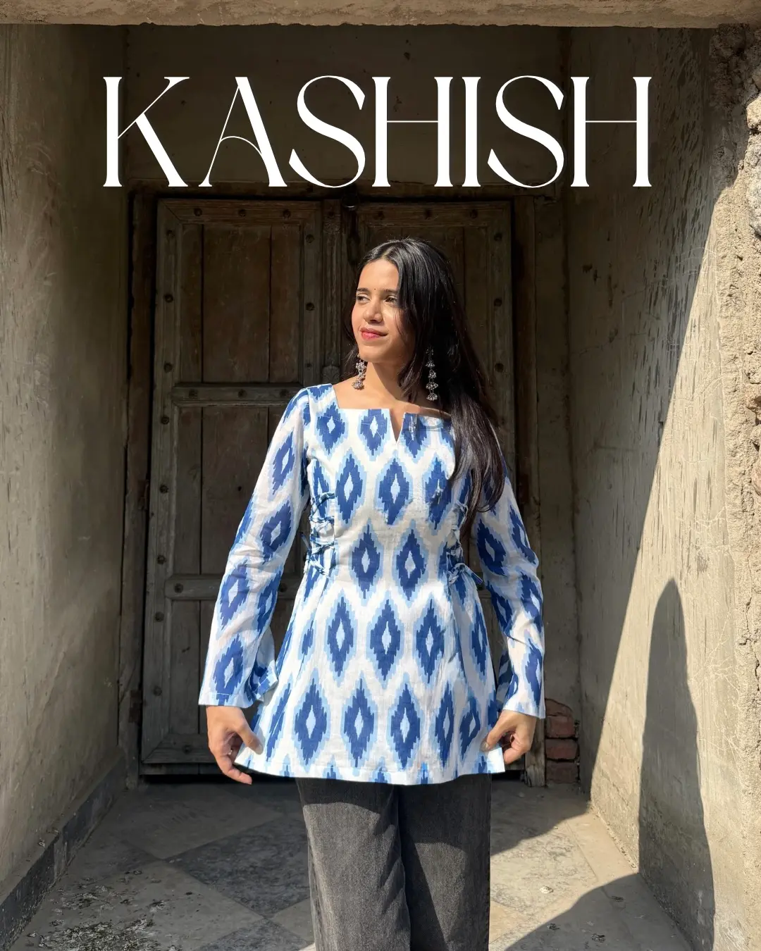 Introducing our Kashish Kurti, thoughtfully designed to enhance your silhouette with corset detailing on both sides for a flattering, snatched fit. It features a beautiful neckline that adds a touch of elegance, while the double-lined construction ensures comfort, structure, and a premium feel. Stylish yet comfortable, Kashish is perfect for days when you want effortless grace with a modern touch.