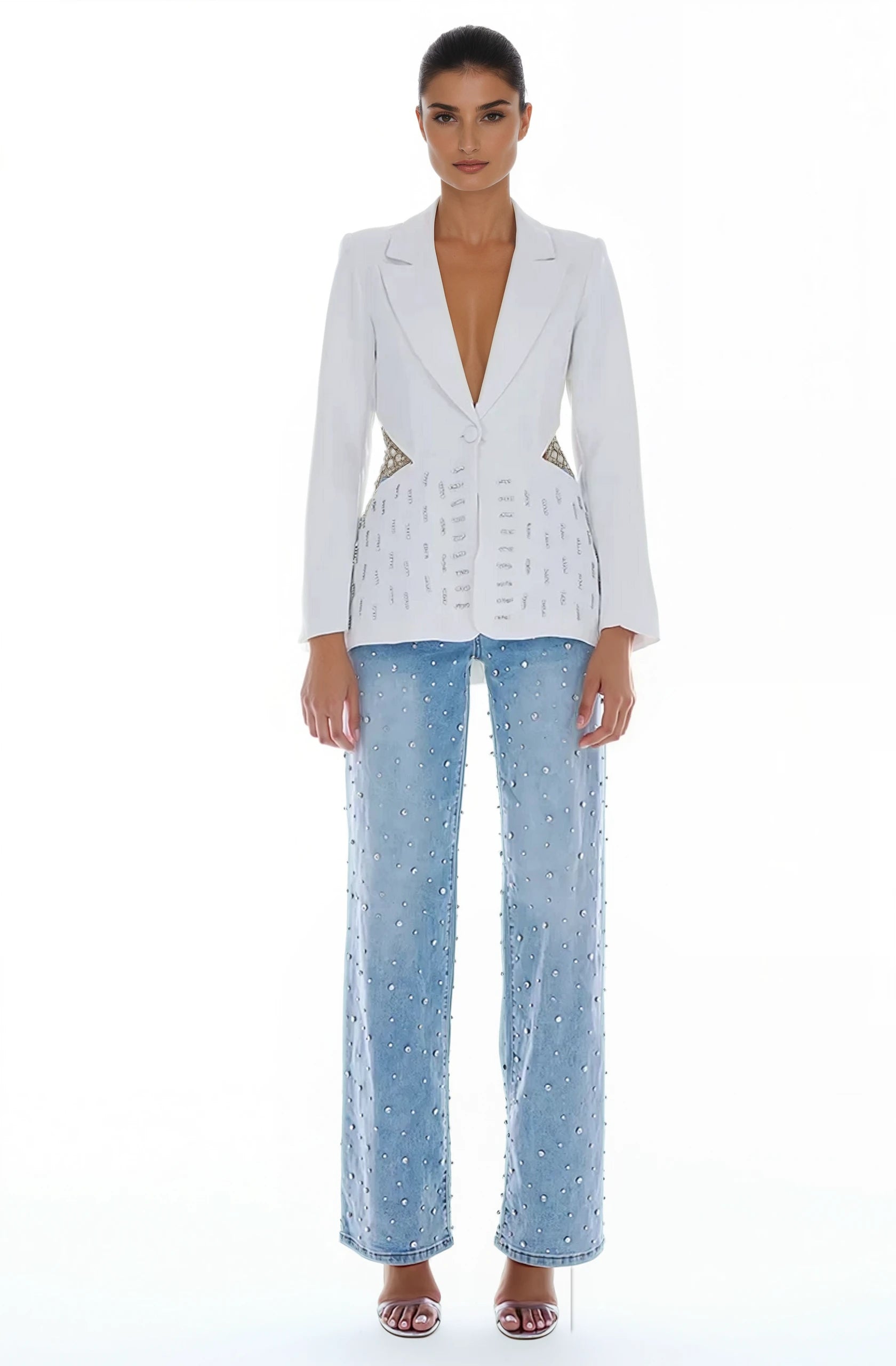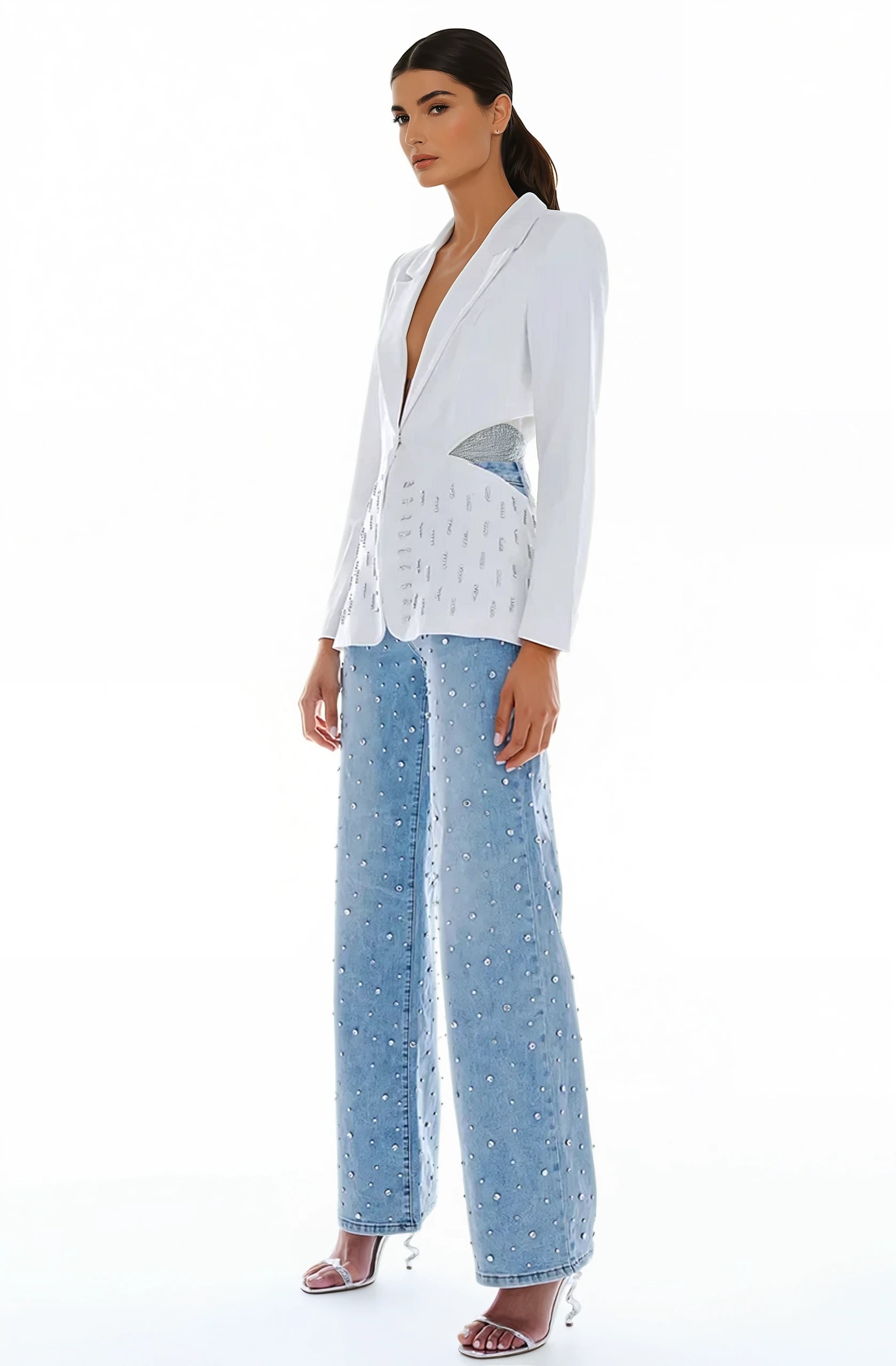 Ivory Bloom – Rhinestone Embellished Wide Leg Jeans – IceBlue