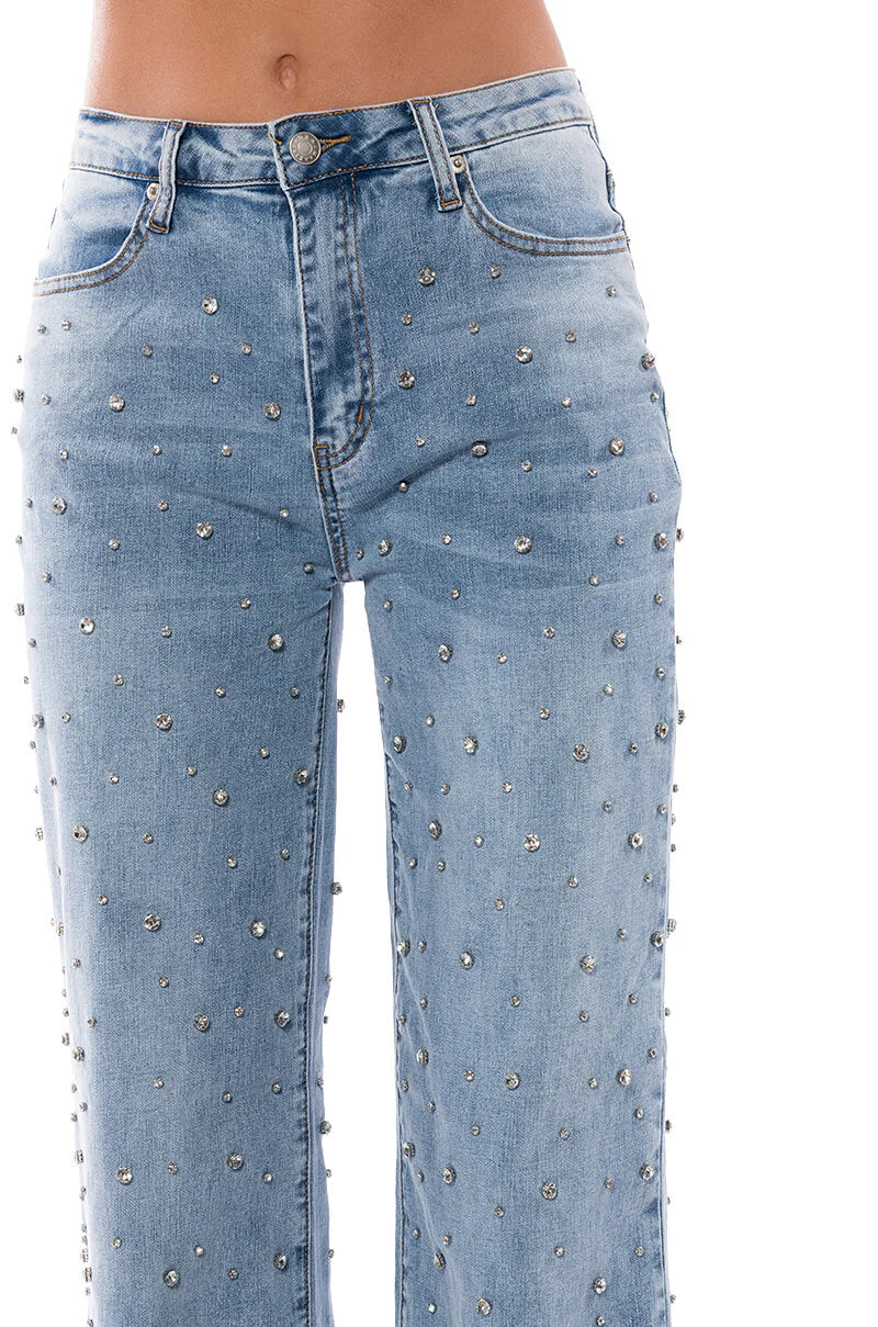 Lumière Rhinestone Embellished Wide Leg Jeans