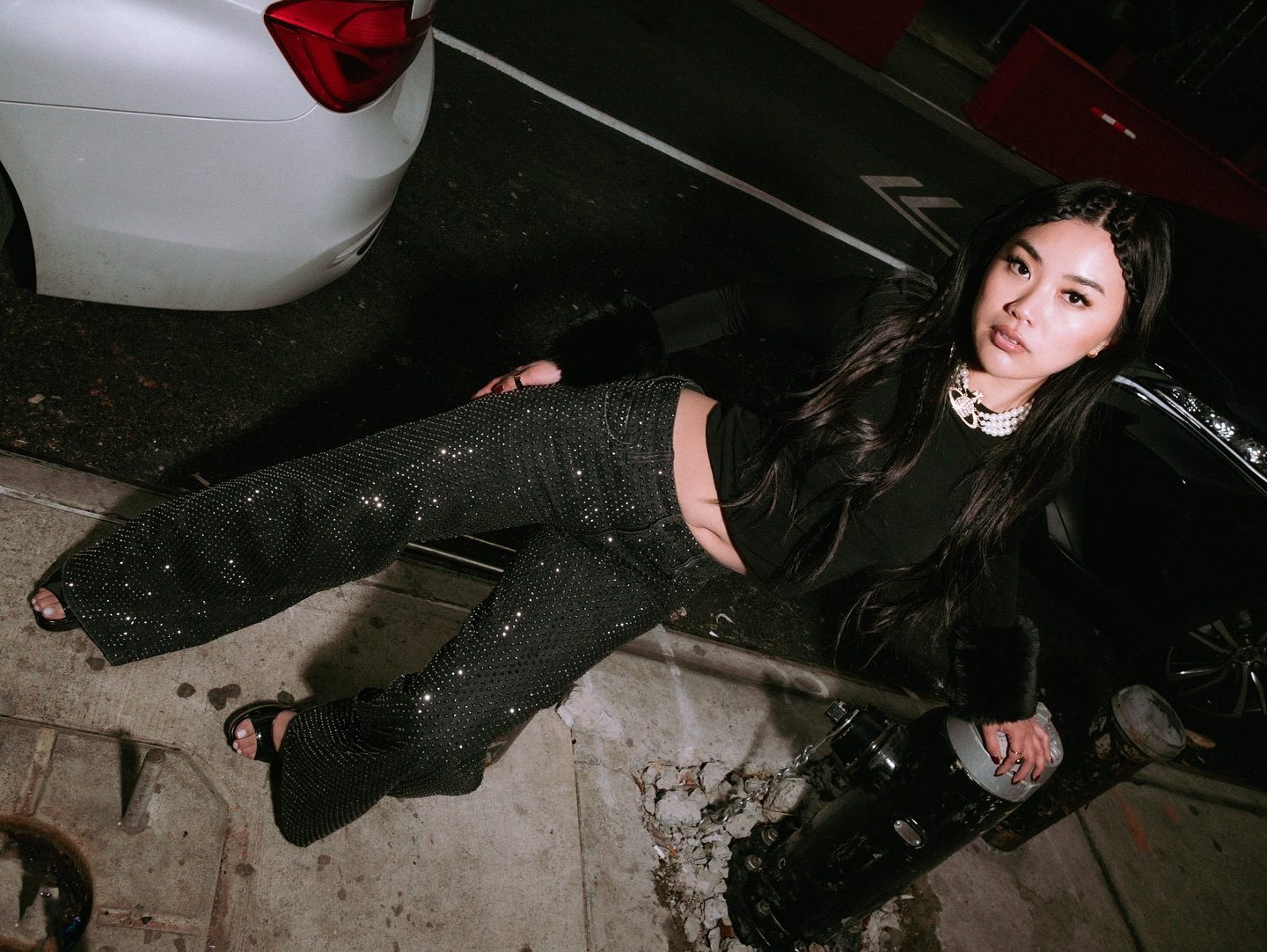 Black Dazzle Band – Rhinestone Embellished Wide Leg Jeans