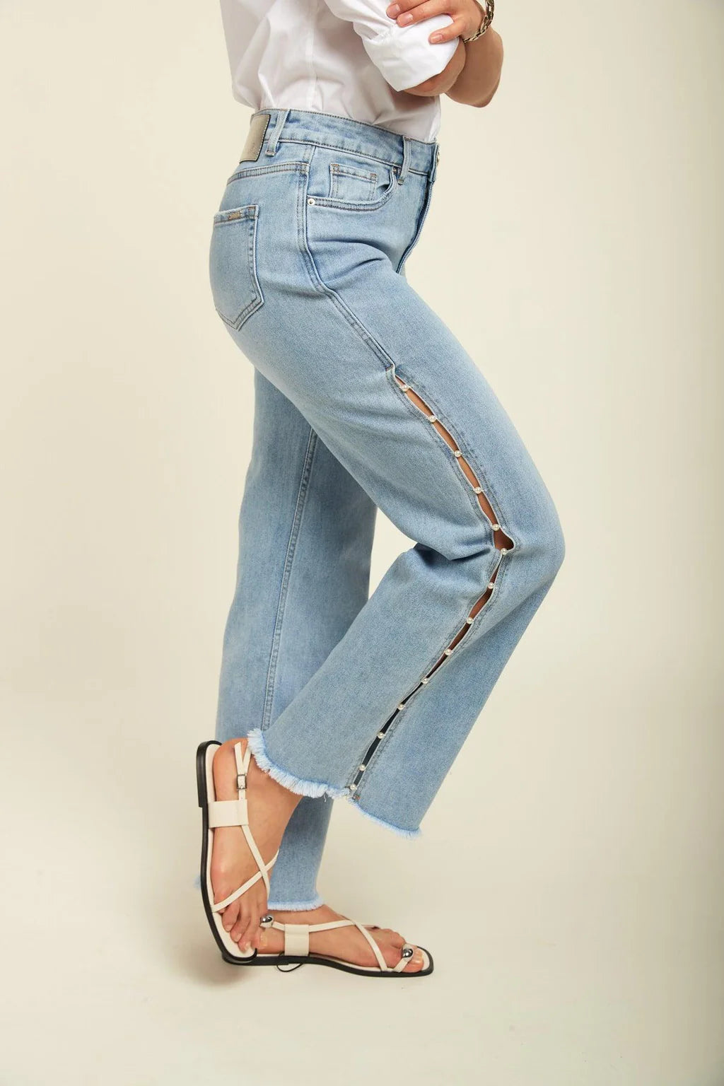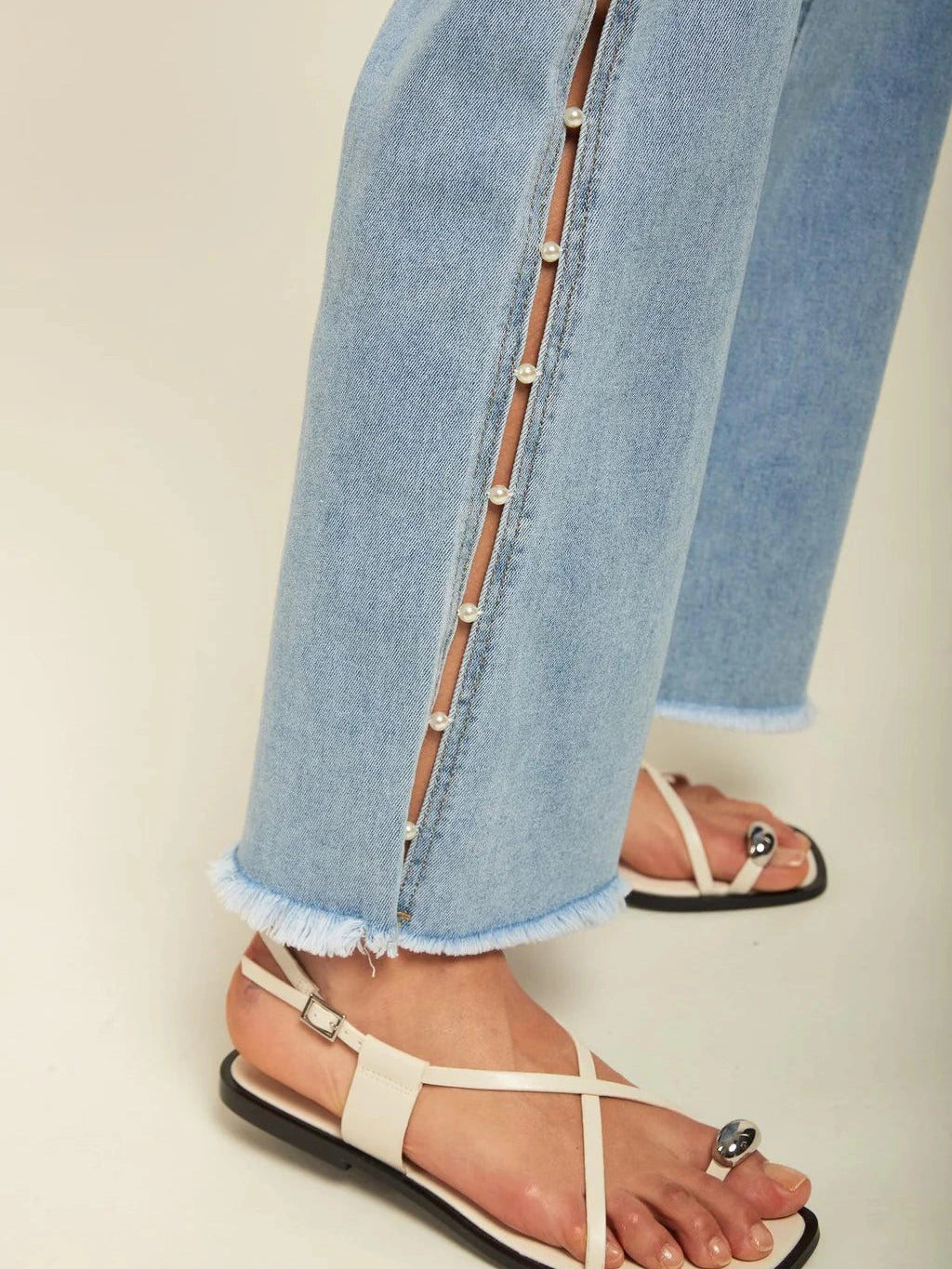 Pearl Slit Wide Leg Jeans – Ice Blue