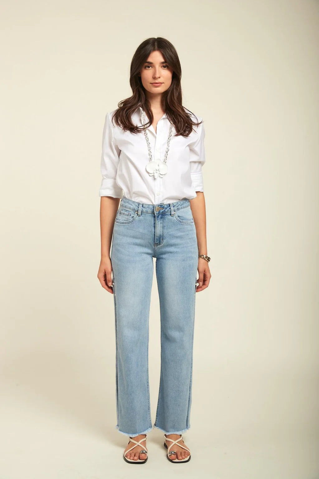Myra – High Rise Pearl Embellished Wide Leg Jeans