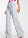 Ophelia – Pearl Embellished Wide Leg Jeans – Ice Blue