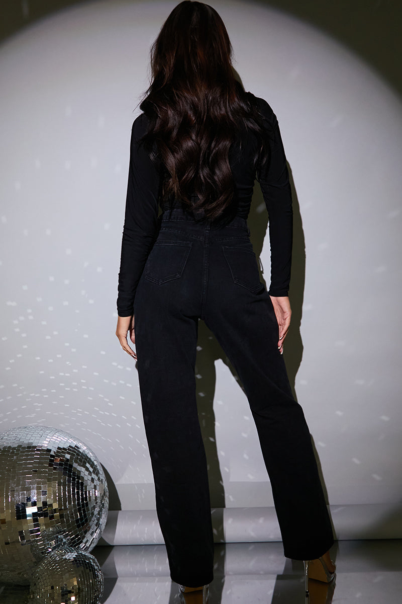 Elevate your evening wardrobe with our Pearl Studded Wide Leg Jeans in Black. These statement jeans feature a high rise, wide leg silhouette adorned with pearls, giving off glamorous and vogue vibes. Perfect for parties, clubbing, or date nights, these jeans are a must-have fashion statement.