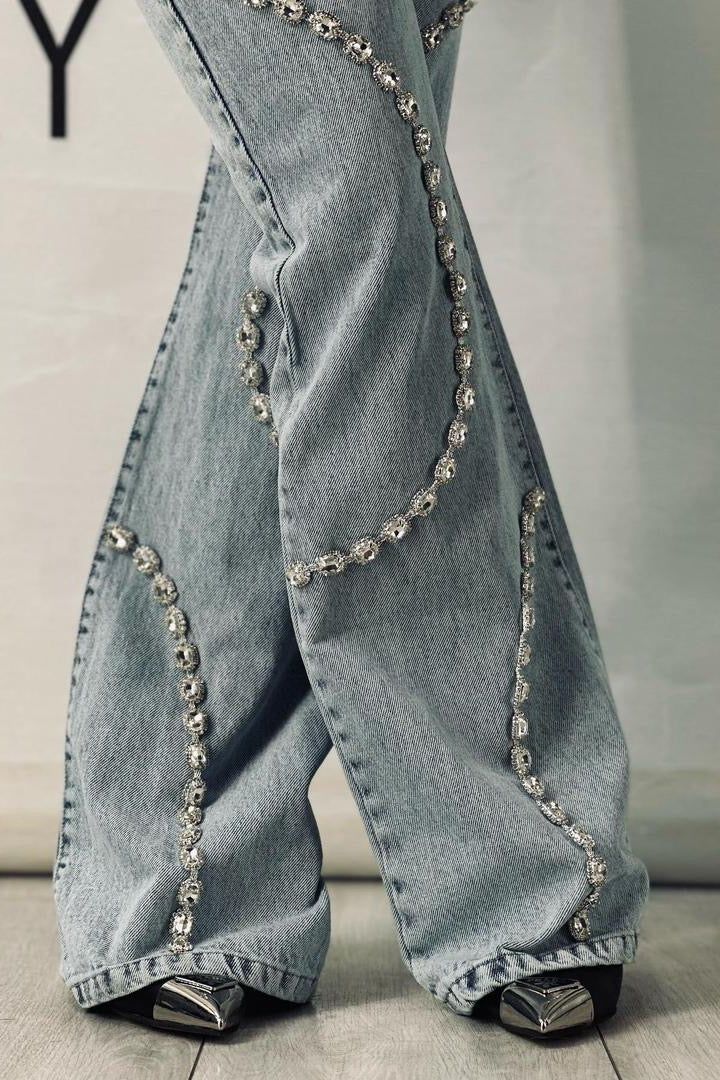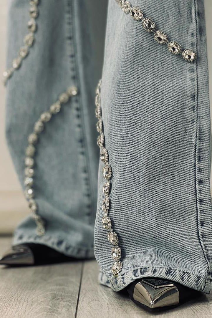 Rhinestone Embellished Wide Leg Jeans – Athena