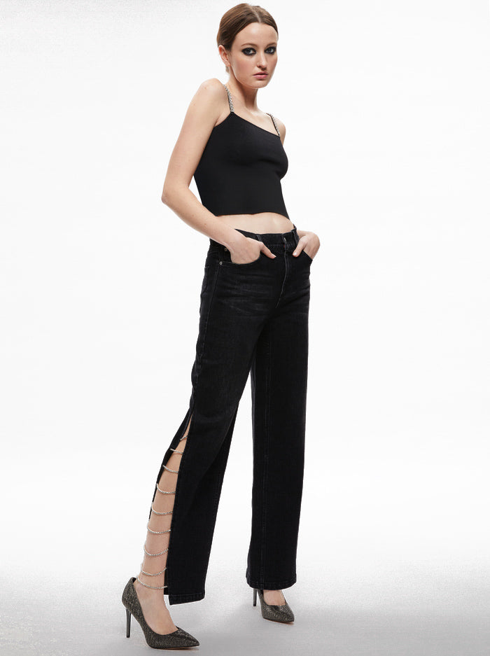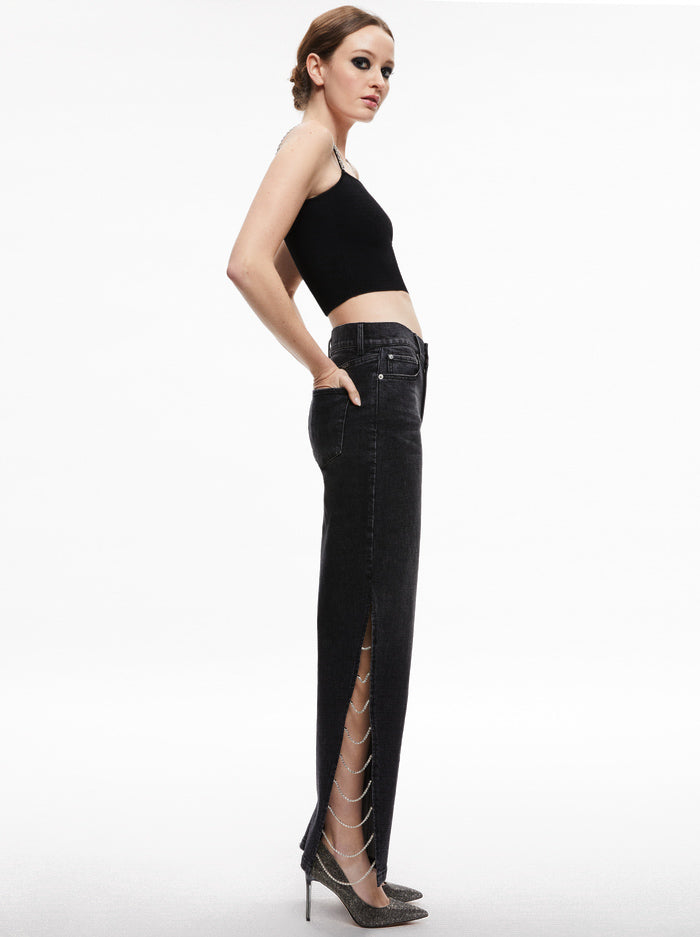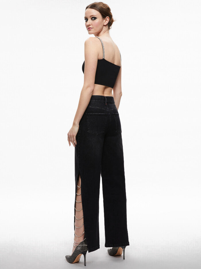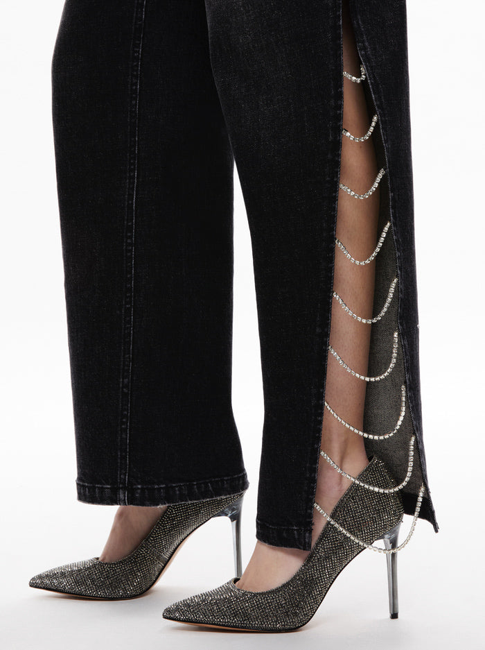 Side Slit Rhinestone Embellished Jeans – Black